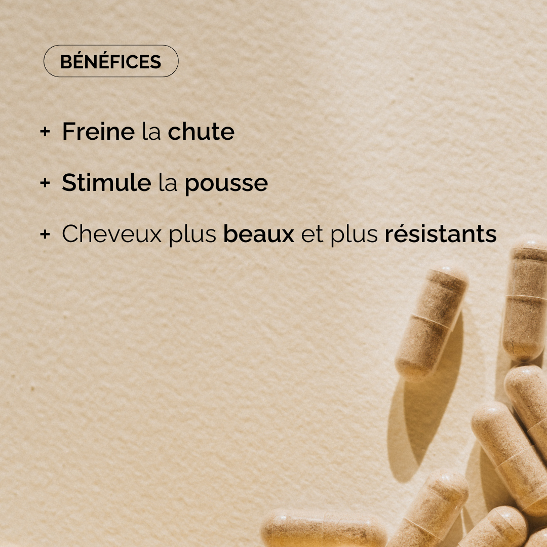 ✔️ Soulage les épisodes de chute de cheveux accrue et anticipe les phases fragiles